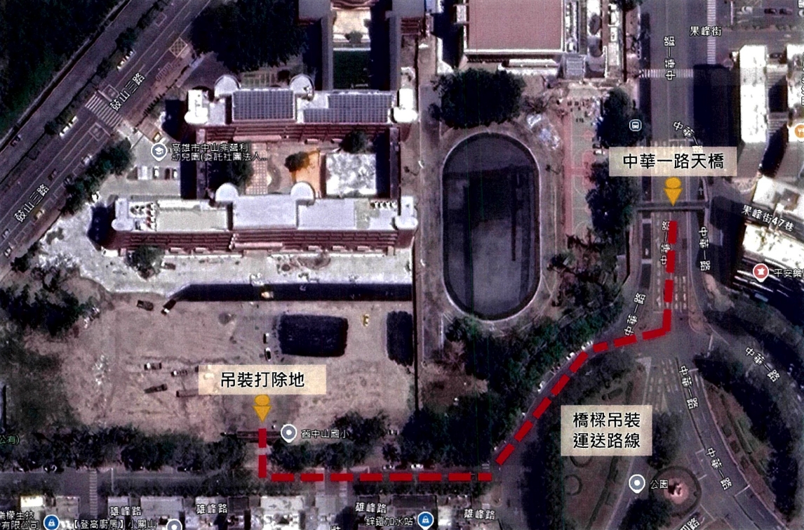 銜接舊中山國小與周邊果貿、前峰等社區的中華一路人行天橋,位處鼓山區與左營舊城區域交界,曾是守候學童及居民跨越車流的通道,一路走來已逾使用年限。工務局道工處今(20)日表示,中華一路天橋使用率逐年降低及橋體日漸老化,配合鼓山中山國小舊址改造為鼓山運動中心綜合園區,於今(114)年7月下旬啟動中華一路天橋拆除工程,營造城市人本新風貌。