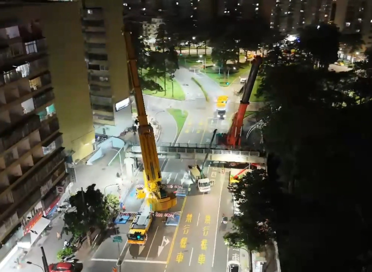 為加速工程進程,天橋拆除作業以鑽石鏈鋸切割後移地打除,可降低交通衝擊及減小施工噪音,同時以縮時攝影完整紀錄拆除過程,橋上無數次的守望沉潛至地平終歸寧靜,拆解舊城足跡的經典回憶化為天際的蔚藍空靈,也讓街道空間重生為串聯城市記憶與未來生活的溫柔場域。